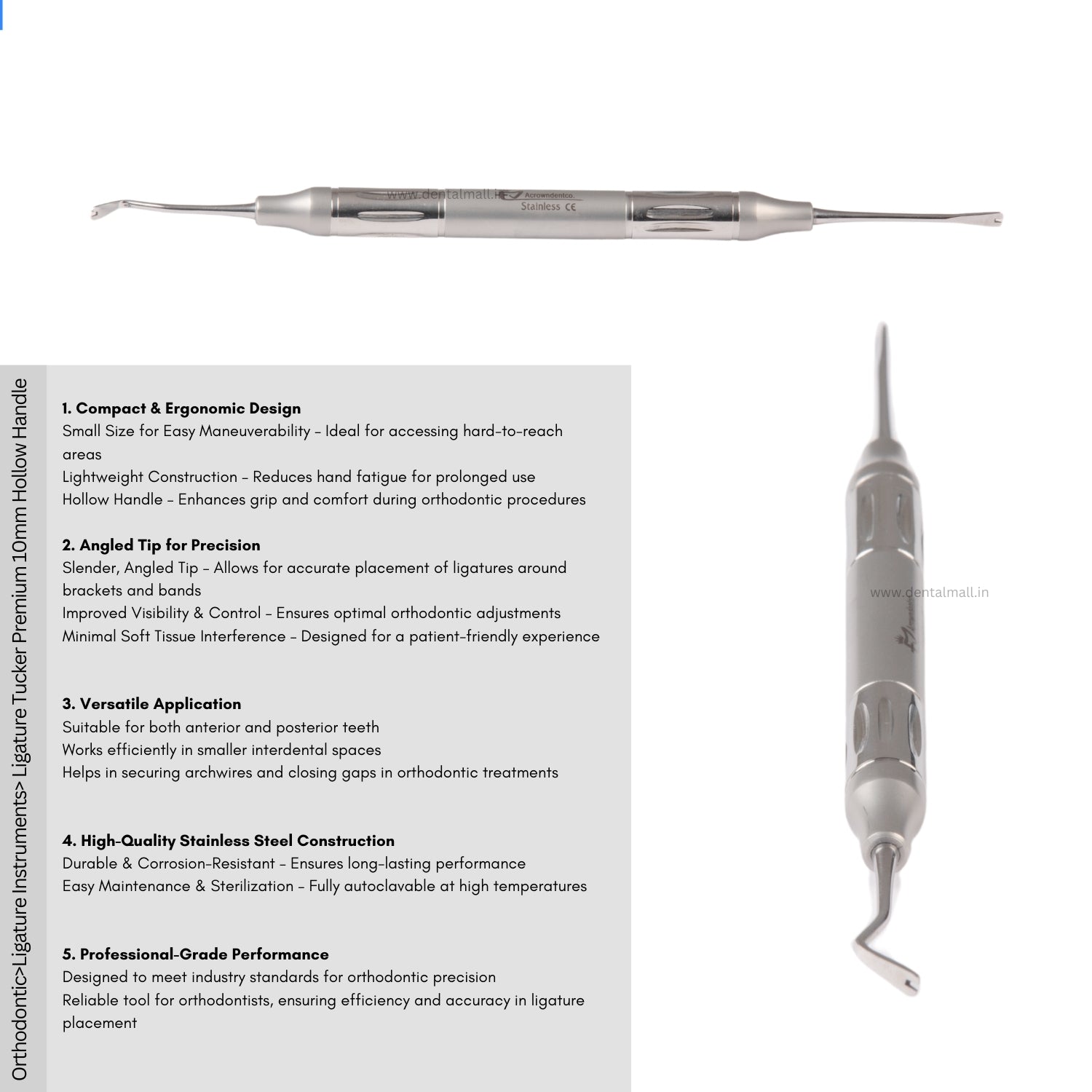 - Ensures accurate placement and adjustment of ligatures during orthodontic procedures.