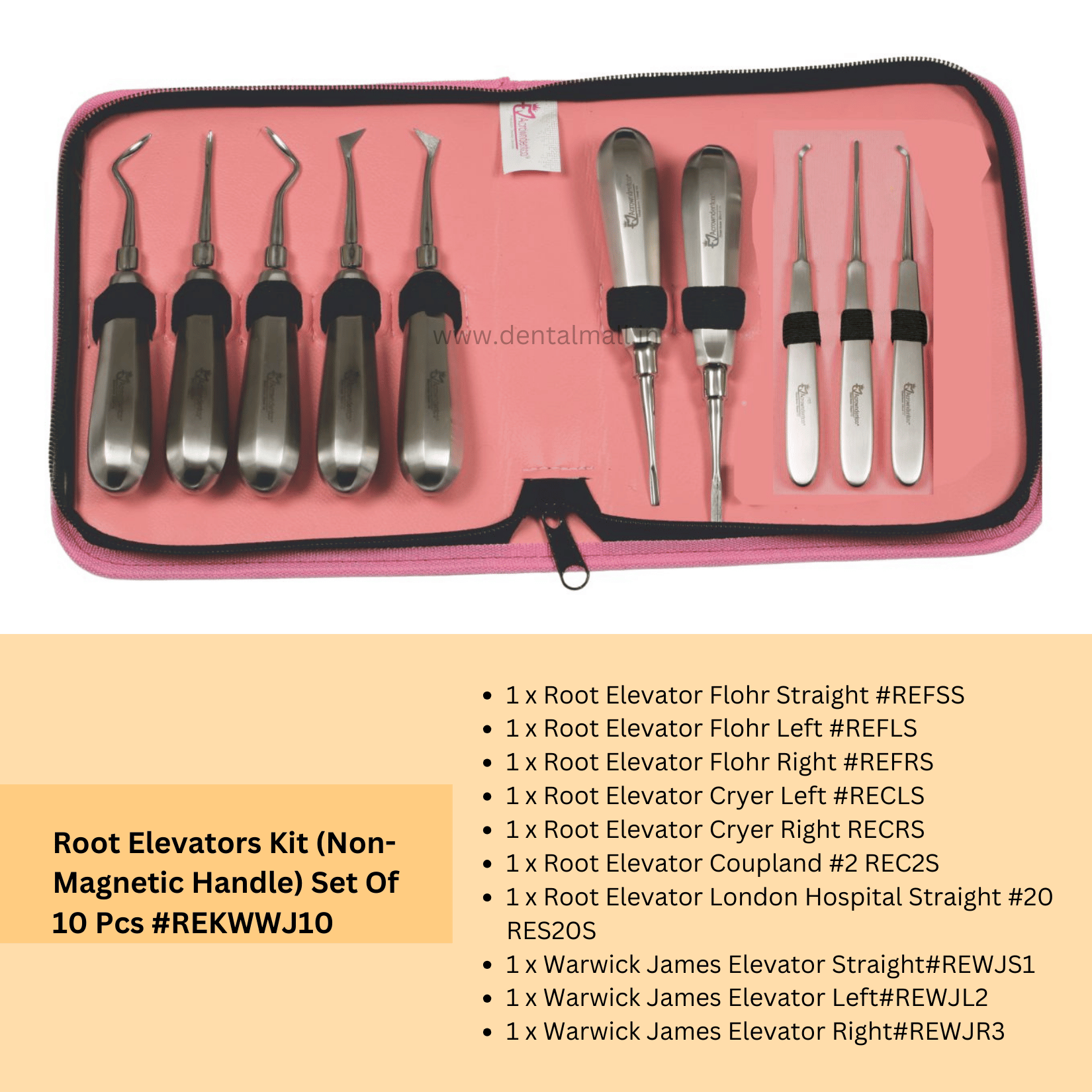 7. Root Elevators Kit β Non-Magnetic Handle (10 Pcs)