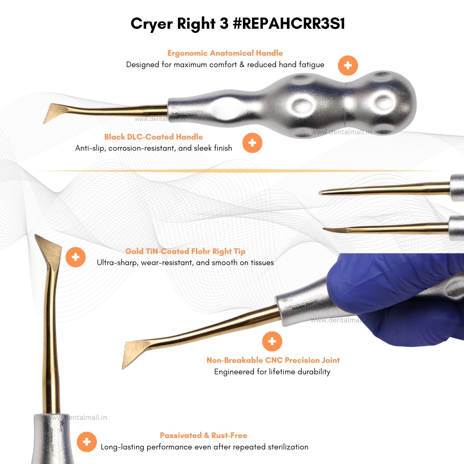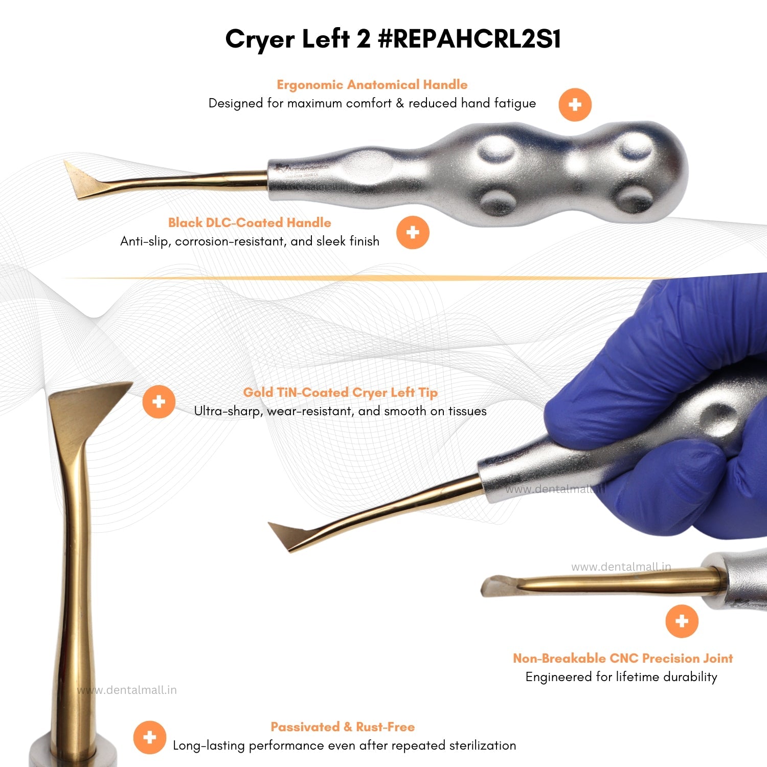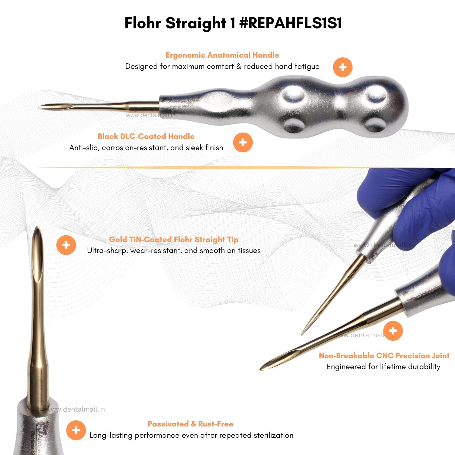 With a sleek Silver DLC-coated handle and Gold TiN-coated tips, the set combines premium aesthetics with uncompromising performance—ideal for all routine and complex oral surgery procedures.